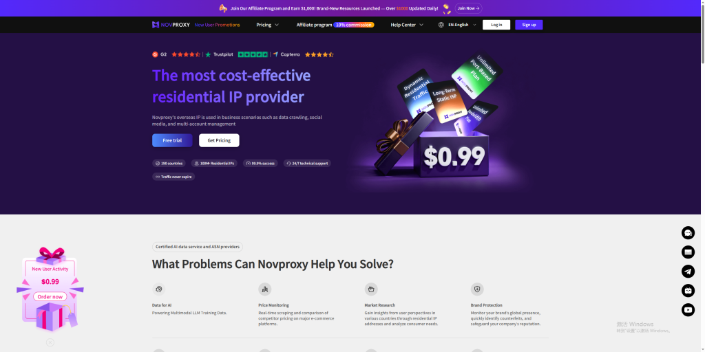 While ensuring service quality, Novproxy provides multiple billing plans such as pay-as-you-go by traffic and pay-by-IP. Small and medium-sized enterprises or individual users can flexibly choose according to their business scale, avoiding the situation of “waste due to unused capacity”. Free trial packages and exclusive discounts for new users further lower the threshold.