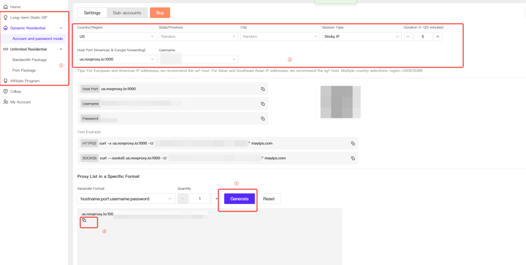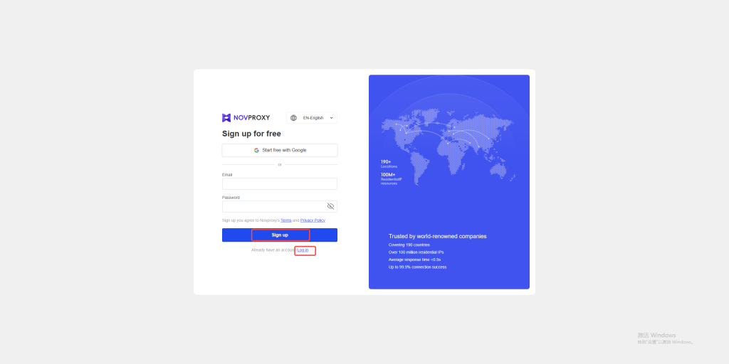 1.Log in to NovProxy official website. If you don’t have an account, please complete the registration process.