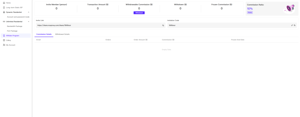 Now you can try to get your promotion commission. Visit the official website of NovProxy and get your promotion link. You can view all your invitation data on the personal page for any user who pays through your link. You can also withdraw your commission and transfer it via any supported provider. You can get a 10% commission for all paid activities. This is a permanent figure and it will not change.