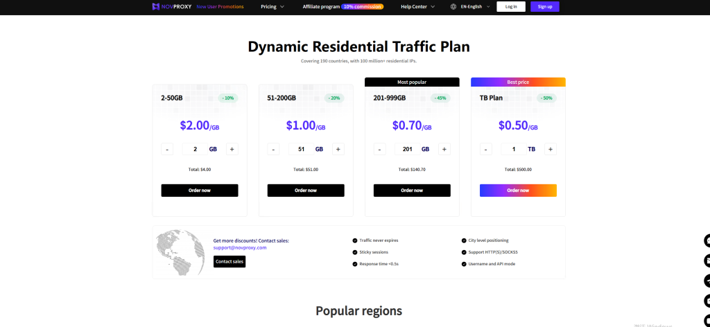 NovProxy boasts a massive residential IP pool covering over 195 countries worldwide, along with unlimited data plans and stable static IP services, firmly securing its spot in the first tier of the 2025 proxy market! Its stability and anonymity perform exceptionally well in high-frequency scenarios like data collection and social media operation, making it a cost-effective top choice for small and medium-sized teams and individual developers.