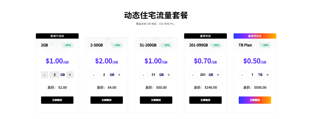 地域覆盖广,突破地域限制:提供全球190多国家 / 地区的住宅 IP 资源(如美、欧、东南亚等),可满足跨境爬虫需求。例如:爬取亚马逊不同站点的商品价格时,使用对应国家的住宅 IP,能获取与当地用户一致的真实数据(避免因 IP 地域不符导致的内容屏蔽或价格差异)。