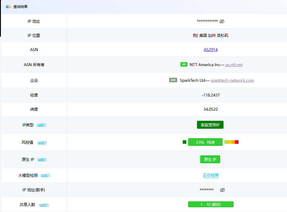 - 判断标准:结果标“Residential”就是住宅IP,标“Data Center/IDC”就是机房IP。