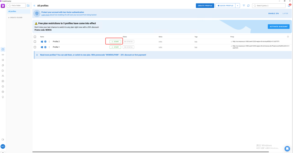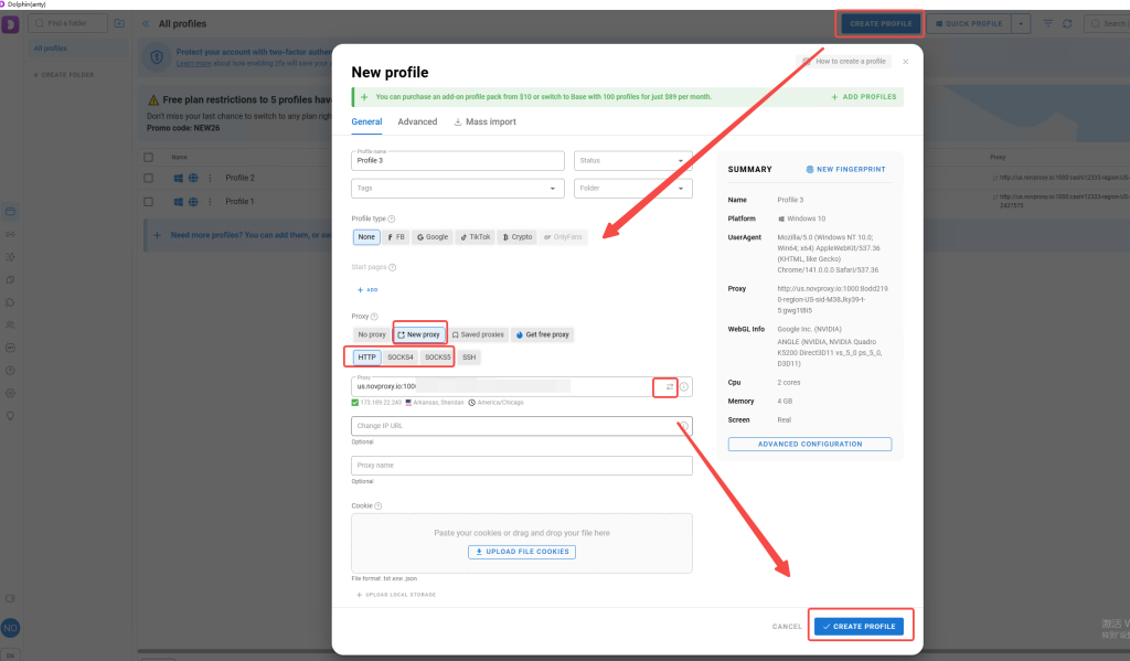 点击右上角的[CREATE PROFILE];