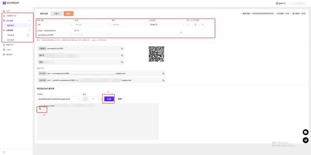 2.①请从左侧菜单栏中选择已购买的代理 IP 。