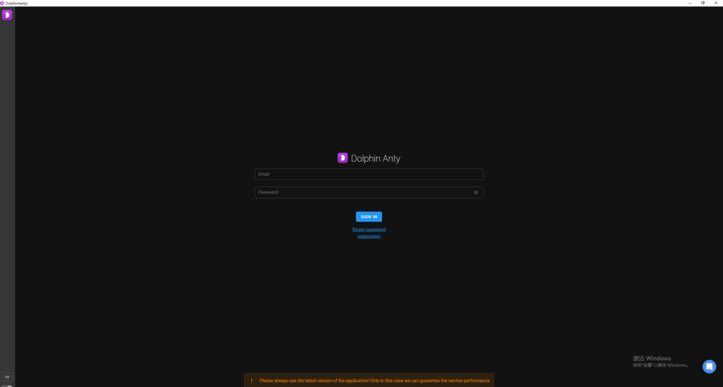 3.登录“Dolphin Anty”(请输入您的账号和密码进行登录)。如果您尚未拥有账号,请完成账号注册流程。