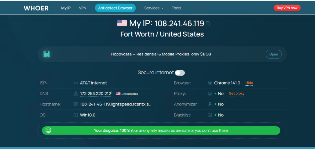 2.高度匿名性:该住宅网络 IP 来源是真实的,能够隐藏用户的身份,适用于各种敏感任务;