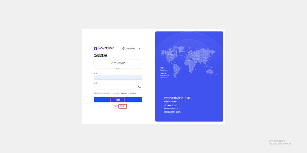 1.登录 NovProxy 官方网站。如果您尚未拥有账号,请完成注册流程。