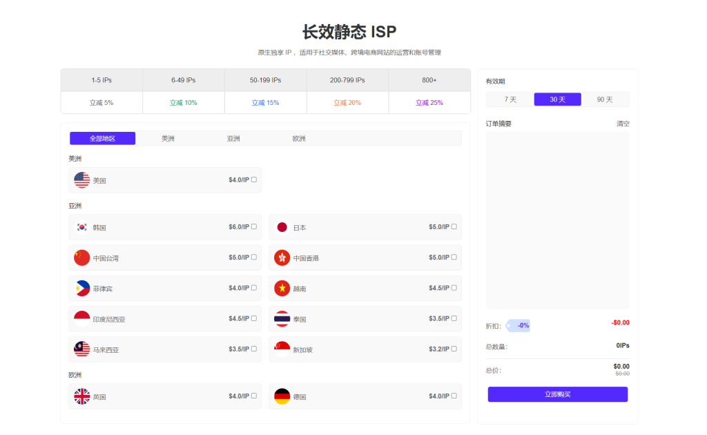 1-5 IPs 优惠 5%;
