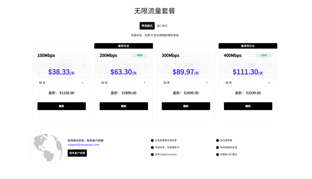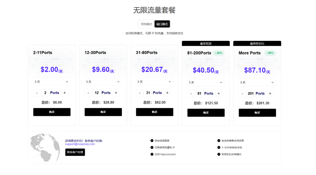4.高性价比:与竞争产品相比,NovProxy在价格和资源分配方面具有一定的优势。