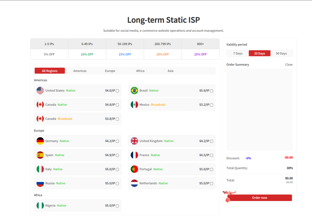 对于Facebook广告账户管理,建议使用Novproxy的静态ISP服务,每月仅需3美元,就能获得原生IP的独享使用权。这种IP更适合长期养号,具有更稳定的连接和更干净的历史记录。